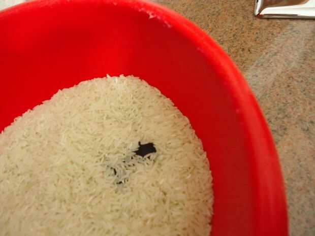 llene el tazón con arroz y poner el dispositivo en él durante un par de días :)