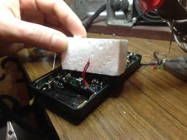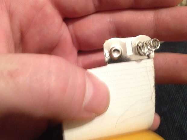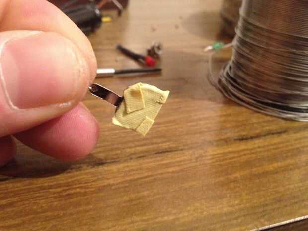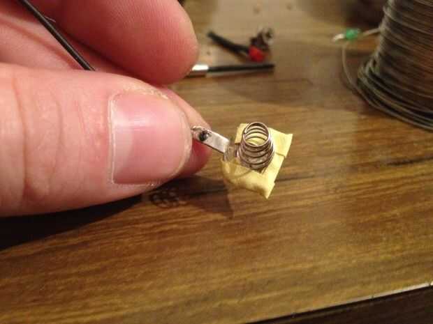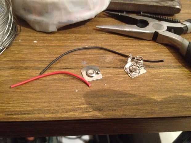 A continuación tomó parte 2 (que es en realidad de dos partes) y soldar un trozo de alambre a cada uno de ellos. A continuación, había aislado la galjanoplastia de metal con respaldo en la parte con la primavera. También coloca las dos piezas en la cinta de doble cara y había pegado en el interior del multímetro.