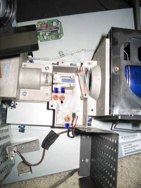 Esta parte es difícil. Tienes que pelar apagado las arandelas de caucho naranja con cuidado, volverlos a montar en el soporte de rueda de color, luego ponga de nuevo en la rueda de color. Trató de utilizar alicates de punta, pero terminó uno de los topes de cortar al hilo un poco. Terminé usando sólo mis dedos, como que parecía funcionar mejor. Pele apagado y ajuste en el soporte de la rueda de color. Deben superponer sobre superior e inferior del metal de la rueda de color. Los tornillos sólo deben tocar la naranja nuevo topes cuando se pone la rueda de color.