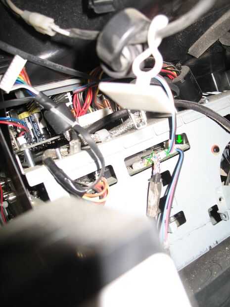 Esta foto es un extraño, el lado izquierdo de la imagen es hacia la parte posterior de la TV y el lado derecho es hacia el frente. Esta visión es con el motor de la luz se deslizó ligeramente hacia fuera y es del lado derecho de la TV mirando hacia la izquierda. Sólo hay 1 cable que usted necesita desconectar aquí. Una vez que usted desenchufe este cable, puede Deslice el motor de luz, pero otra vez, no tan lentamente porque todavía se enchufan los cables de la luz, y no pude encontrar una manera fácil de desconectarlos. Ya pude hacer todo lo que necesitaba para con ellos todavía conectado, no me molesto para eliminarlos.