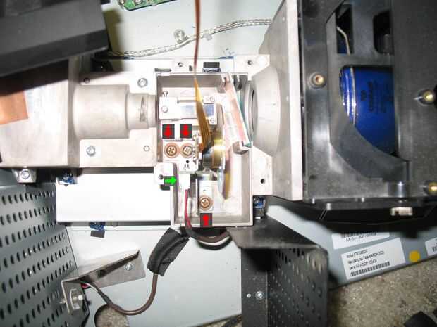 Hay 3 tornillos y un cable que necesita e desenchufado. Estos tornillos son muy difíciles de quitar, así que ten cuidado. También se puede limpiar el vidrio en la parte superior derecha de la cubierta de la rueda de color. Una vez que usted retire los 3 tornillos, usted puede suavemente saque la rueda de color. Tiró en la parte metálica cerca de donde se conecta el cable.