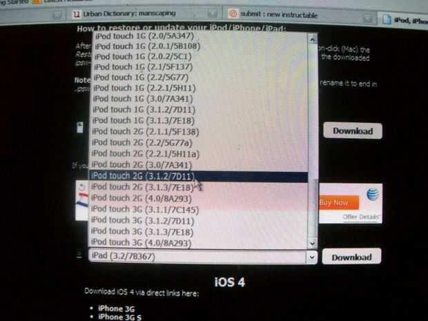 Ir a http://www.felixbruns.de/iPod/firmware/ e ir al segundo cuadro desplegable y elegir el firmware. El truco aquí es no escoger el firmware 3g. Elegir el 2g, a pesar de que su dispositivo es un 3g confía en mí he probado la 3g y nada funcionó.