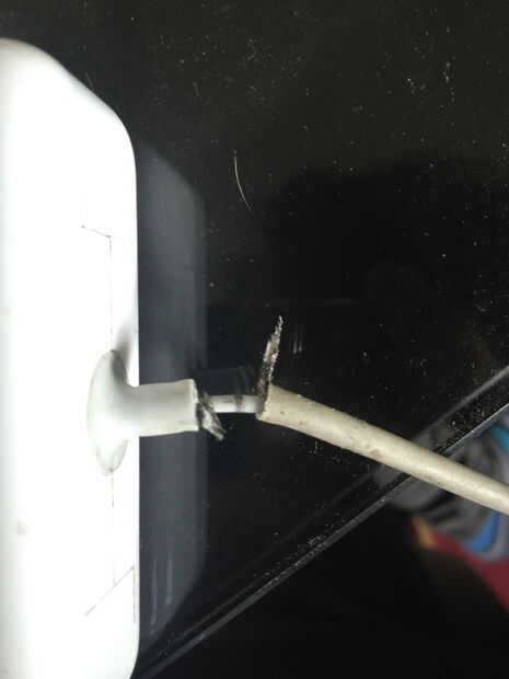 Apple realmente cayó la bola en el diseño de este cargador. El pilón cable utilizado en el diseño es simplemente débil cualquier estrés real, arrollar y tirones. Finalmente el se separa de la envoltura de goma del Conector MagSafe o el ladrillo de la