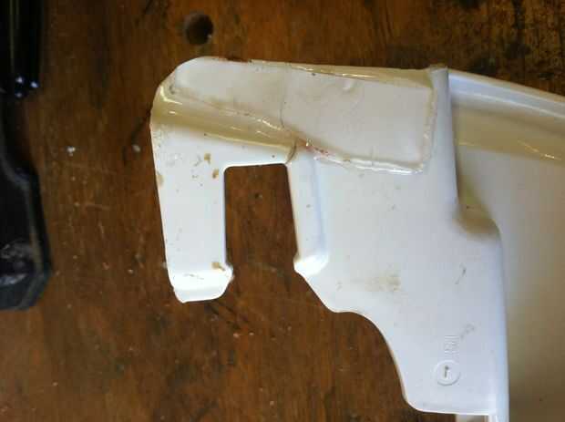 Eso es, es una solución muy simple. Con el epoxy y el plexiglás que aún no dices estaba quebrado y ahora es mucho más fuerte que antes. Además no había ningún dinero desperdiciado en la compra de un repuesto.