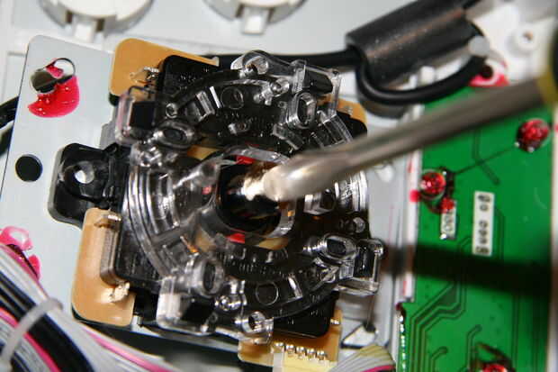 Sin embargo: en primer lugar, usted necesita desconectar la parte superior de la bola de la palanca de mando. Para ello, necesitarás el flathead destornillador. Meter el destornillador en la muesca en el extremo de la palanca de mando, retención de la parte superior y el giro del gancho agarrador. sí, estoy seguro hay algunas insinuaciones que se tenía allí, pero lo que sea. La parte superior debe salir sin demasiados problemas. Sacar la circular "dustcap" así - el disco pequeño - y ambos dejaron de lado.