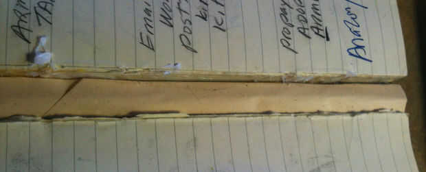 Aplique pegamento en el lado que va a tocar el lado externo de la espina dorsal.
