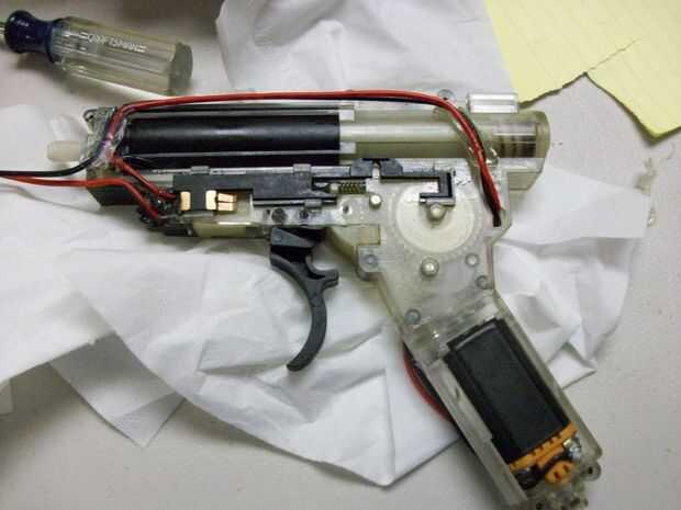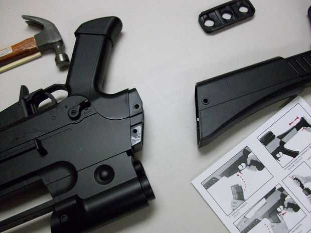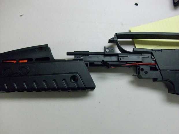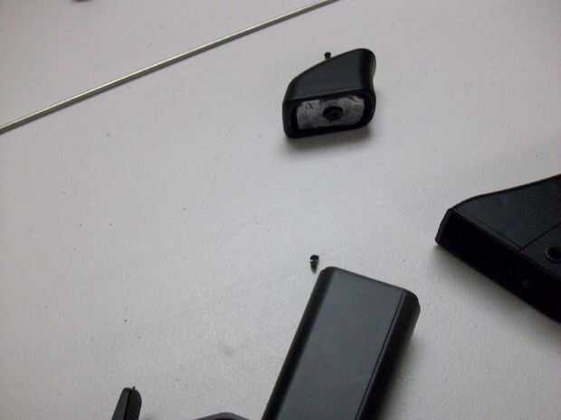 1. cortar los palillos lo suficientemente delgados para caber a través de los agujeros de pernos (las cosas que sujetan el arma). Poner el palillo en la parte superior del perno y un martillo hacia fuera. Consulte el manual de instrucciones para tomar aparte.