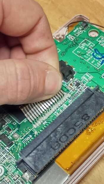 1. hay un cable negro que va debajo de la ranura del juego que usted tendrá que quitar esto antes de intentar desoldar el lector apagado del tablero.