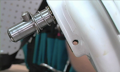El pasador puede aprovecharse en su lugar con un martillo una vez que los agujeros de perno de rodillo están alineados.
