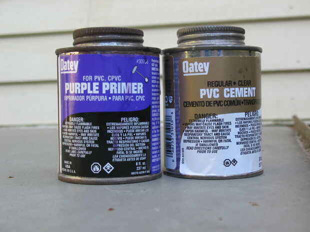 -PVC Primer (es generalmente púrpura, algunos lugares venden una variedad clara muy agradable, si quieres que se vea agradable usted puede conseguir este material. Algunos spudders como el aspecto industrial de las manchas de color púrpura)