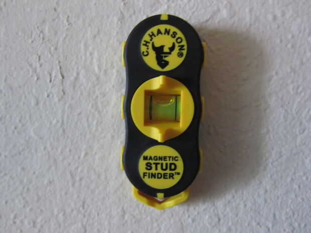 * Si quieren comprar o pedir prestado un localizador de montantes, puede utilizar un trabajo razonable de encontrar las vigas sin necesidad de herramientas. Sólo golpes en la pared y escuchar el ruido sordo de yeso inmediatamente sobre una viga. Puede acercarse bastante con este método y entonces acaba de encontrar el centro del montante. (Pero por qué usted no querría una herramienta barata que incluye no sólo los imanes, pero también un vikingo está más allá de mí).
