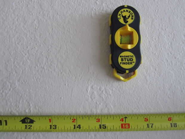 Una vez que encuentre la ubicación general de una viga, usted querrá asegurarse de que está hundiendo su perno en el centro de la tabla de madera. Ya voy colgando a pocos cientos de dólares en la pared, quiero estar seguro de que no estoy manejando un tornillo en el borde de un 2 x 4. No completamente confío en mi buscador magnético, particularmente para encontrar el centro de un poste de madera (y termo fuera de lugar no un pobre para los marcos).