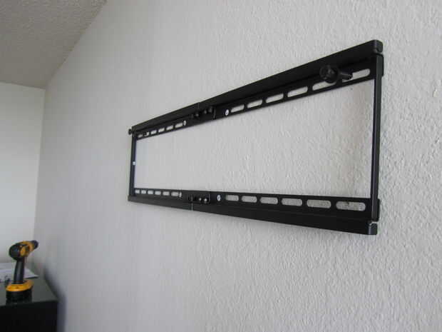 Obtener el Monte en su lugar y poner los tornillos. Empieza con la mano, luego use la llave. Se debe entrar en bastante fácilmente. Si usted tiene que girar la llave sin avanzar hacia adelante, puede que necesite redrill el agujero un poco más grande. (Obviamente, detener antes de utilizar una broca más grande que el tornillo). No apriete en exceso, o se quebrará el el panel de yeso.