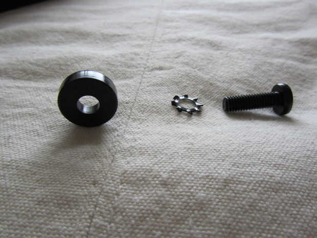 Para el accesorio real, utilice una arandela y un tornillo. Revise las imágenes de lo debe buscar. (Yo utilicé a los espaciadores de plástico. Usted probablemente no será necesario.)