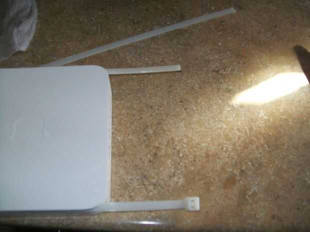 Cortar zip y taladro agujero en él. Asegúrese de que la broca es más pequeña que el empate. Coloque el anclaje de paneles de yeso, luego atornille la brida a la pared con el aeropuerto. Una vez hecho el cordón sostenga el aeropuerto en su lugar.