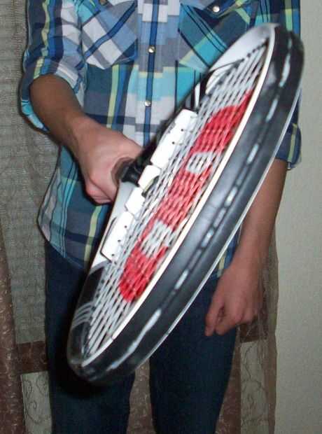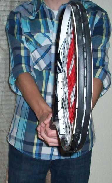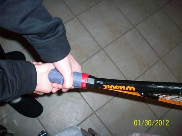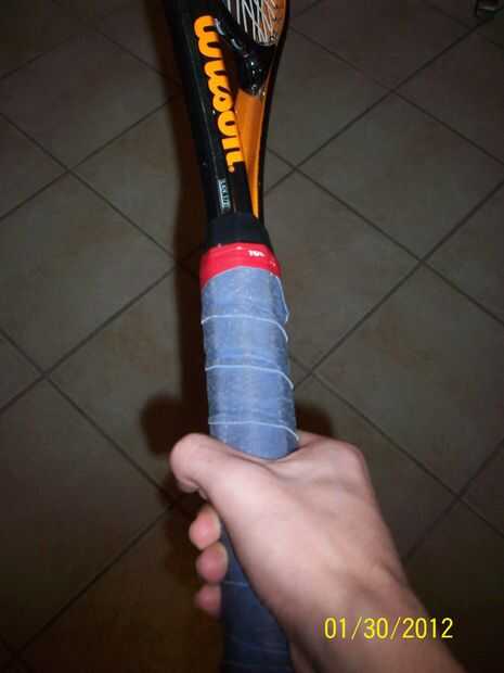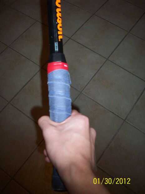 El último apretón se llama el agarre de dos manos revés (cuadros 7-9). Sostener la raqueta con la mano derecha usando la empuñadura Continental regular, luego colocar la mano izquierda sobre la mano, manteniendo una empuñadura semi-Western derecha para zurdos. Fuerza del hombro es lo importante de usar la fuerza y dirigir la bola hacia la corte. También es buena en bolas bajo la mano extra puede añadir punch a los trazos. Para este agarre más esfuerzo para dirigir que la bola es necesario la rotación de la cadera se pone en acción.