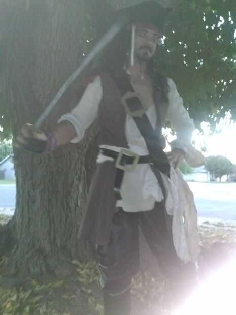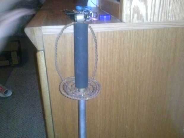 Cada pirata buena necesita una espada por lo que es cómo ser havin una mano en la fabricación de minas. Yo ser startin con un viejo, espada de entrenamiento de ninja de espuma. Rayas de la espuma y otros implementos hasta el mango. Entonces me hecho a mano del suegro el protector con trenzado cobre y la cubierta de la manija, lo bendiga! Luego rocía con plata rustoleum luego espolvoreada con el negro plano más barato que pude comprar. Era en conjunto $6 en pintura y luego de algún tiempo.
