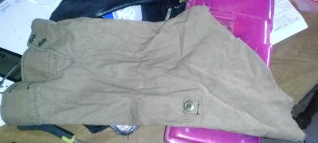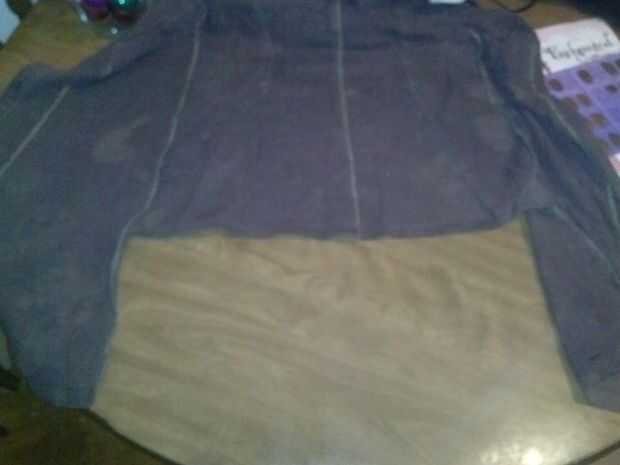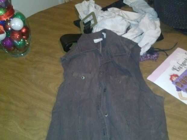 El chaleco me parece ser la más laboriosa. Cotizan un más pequeño, sobretodo señoras (1 $ en la tienda de reventa de los veteranos) que era muy marrón, a verse en la foto. Cortar las mangas para hacer más de un chaleco. Entonces tiró de las puntadas de las correas de la espalda y dobladillo de los bordes y que era el patrón básico que pude decir. Dejé los bolsillos en el pecho pero en la película los bolsillos en la parte inferior, no superior. Después de que la forma básica hacía mí y mí primer oficial teñido en color azul marino de rit y luego se lava el color fuera que saldria. Entonces ser real oscuro, lavan en una solución de blanqueador con luz en la lavadora (luego de un baño de té) para obtener el color que tenemos en las fotos. Primera-mate súper impresionante ser havin!
