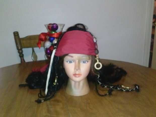 La peluca es una peluca vieja que tenía de un traje diferente. Usé partes de ese viejo traje para el soldado romano antes de así ser havin una peluca y cerca de la otra persona. Corté una hoja vieja unos 18 pulgadas por 36 pulgadas y que me pañuelo. Poner la peluca, ajustar los mechones de pelo enmarañado viejo y después atado en. Yo había trocado una caja de bolas para cerca de $8 y un rollo de hilo trenzado de lujo por $1. De crédito me esposa por las trenzas y las rastas ya que necesitaba la ayuda y con su habilidad fue batida en forma. Había tallado el gancho neto fuera de un stock de plantas de mi jardín y ella atado allí también. Cualquier buen pirata necesita una aguja de vela/net y algunas varias trenzas y rastas y un señor pirata necesita su pedazo de ocho.
