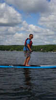 Si se siente desequilibrado, doblar las rodillas un poco y poner los brazos a los lados, sosteniendo la pala fuera del agua.
