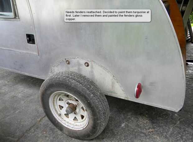 Empecé con un remolque de lágrima rescatado y parcialmente construida que estaba en grave necesidad de reparar un poco del piso y un montón de podredumbre de la portilla. El techo se filtró y necesita reconstrucción. Burlete fue reemplazado y añadido, el cableado se rehizo y fue reconstruida la cocina cocina. A continuación, después de limpiar la piel de aluminio, decidí pintar las defensas y tapas de rueda. Aunque me ha gustado el efecto he decidido hace varias semanas para añadir un tema de steampunk al remolque. Si usted está interesado, aquí está cómo usted puede hacer algo similar.