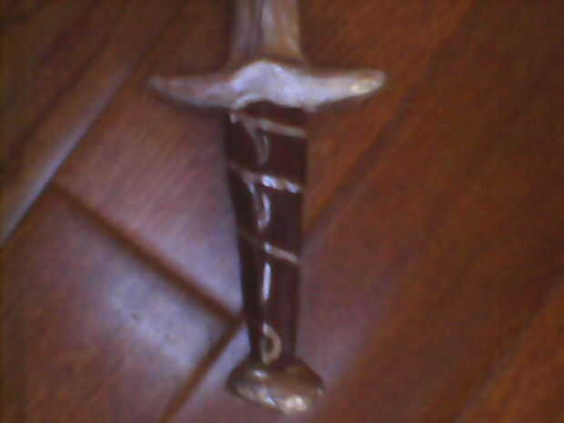 cómo hacer un protector de acero martillado para una manija de la espada.Recientemente encontré una lámina de la espada, se escondía en el boquete de la puerta trasera de un coche había comprado y decidió hacer un mango para. Parece ser una versión c