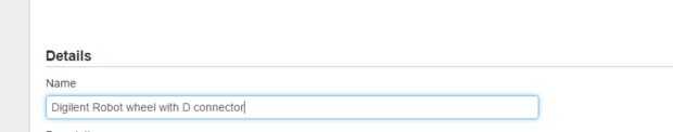 A continuación tendrá que nombrar su diseño. Trate de mantenerlo relativamente corto, pero que sea descriptivo. Mi diseño es una rueda del robot con una D en forma de conector que incluye el logo de Digilent. Así que incluí todos los detalles en el nombre.