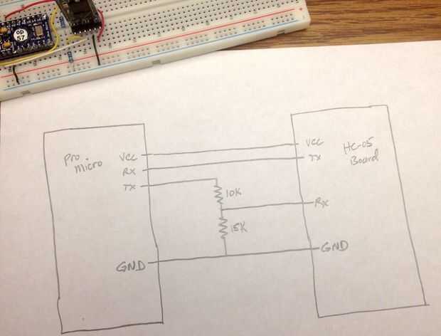 - Conectar el pin TX del Arduino a través de un divisor de voltaje al pin RX del transceptor.