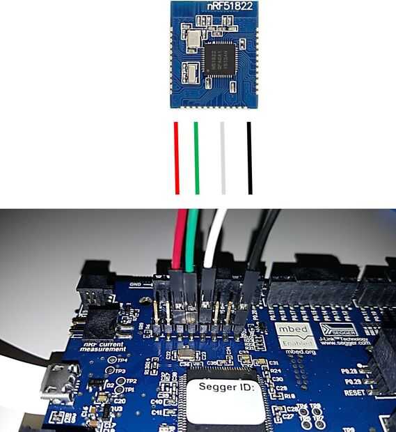pines de programación de nRF51-DK son ocho. Necesitamos sólo cuatro pernos de la misma. Estos soncomo se ve en la foto de arriba: