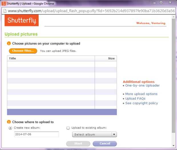 2. crear y nuevo álbum y el nombre o añadir las fotos a un álbum existente usando el menú desplegable.