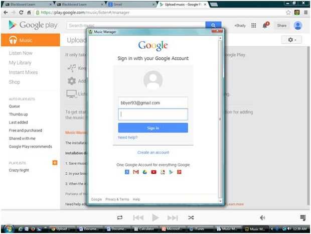 Ahora se le pedirá instalar el Google Play Music Manager. Seguir el cursor de la simple instrucción. Cuando haya finalizado, se le pedirá iniciar sesión en tu cuenta de Gmail nuevamente.