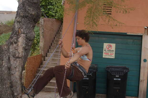 para que tengas un árbol de sesenta pies en su patio trasero con una rama que sólo pide ser utilizado para un columpio. Excepto, a diferencia de mí, no eres un arborista y tienes miedo a las alturas. -Permítanme compartirles un truco de la industria