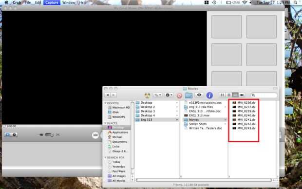 5. Abra la carpeta que contiene el video crudo utilizando una ventana del Finder
