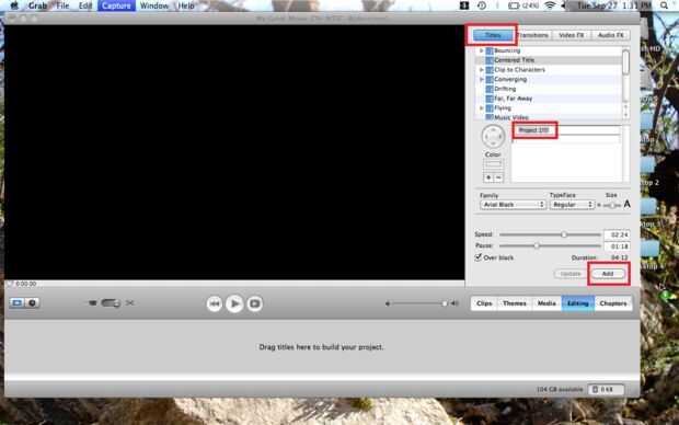 2. Haga clic en el cuadro de títulos en la parte superior derecha de la ventana de iMovie