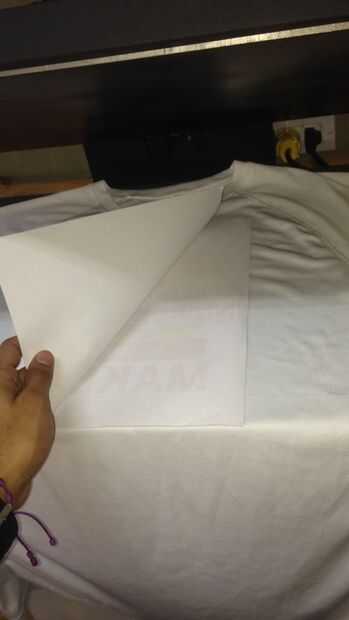 Foto 2: Colocar hoja en blanco encima del diseño para cuando se transfiera la tinta no manche la maquina