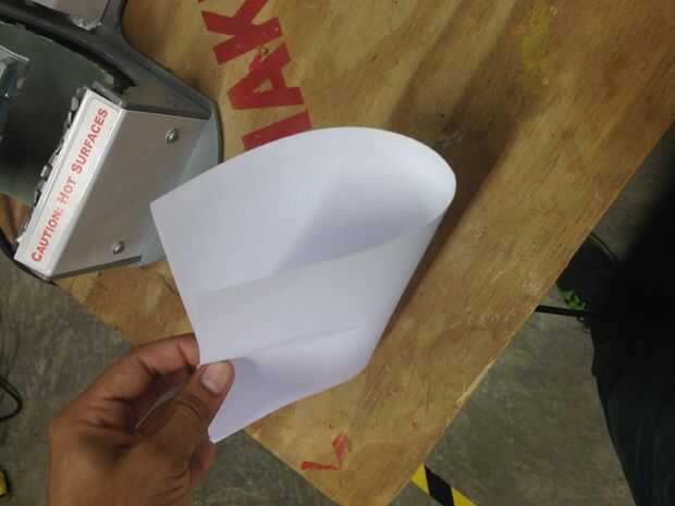 Primero doblamos una hoja y luego la incertamos en la maquina, esta hoja es para la tinta se transfiera ningún pase a la maquina y la ensucie.