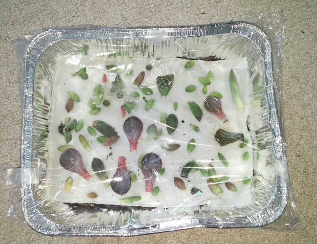 La segunda foto es una bandeja de aluminio con envoltura de plástico suelto, forrado con acolchado en lugar de las rocas (experimentación) y se ve un poco oprimida, pero todavía debe trabajar!