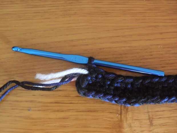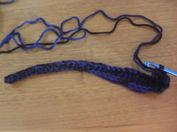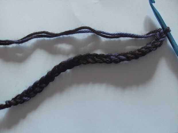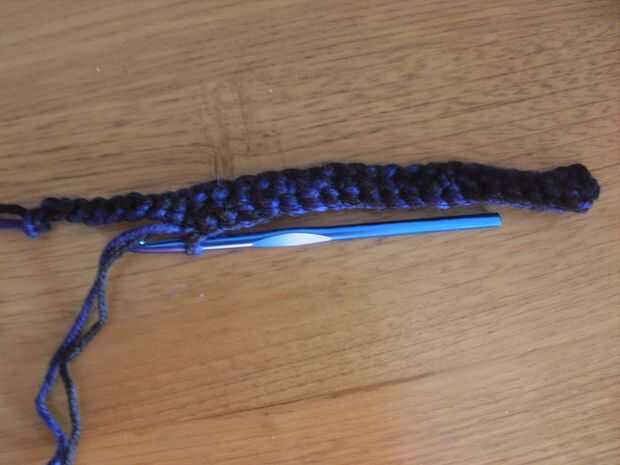 - Trabajando en el lado opuesto de la cadena (a su vez su trabajo): DC4, HDC3, SC14 y colocar un marcador (esto le ayudará más tarde para realizar un seguimiento de tus puntos de sutura). Los próximos pasos están aumentando a pasos.