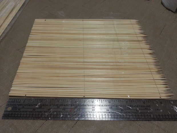 Abra el paquete de brochetas y organizar luego sobre la superficie que está trabajando lado a lado.