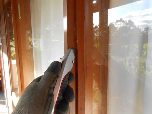 Una vez que el vidrio comprado, necesitará quitar el vidrio roto en la estructura. Utilice el cuchillo Stanley para cortar la pintura desde el marco de la ventana. Pase el cuchillo con cuidado hacia abajo de la hoja de la ventana (esta es la sección que sostiene el cristal en el marco). Hacer esto para todas las secciones de la hoja.
