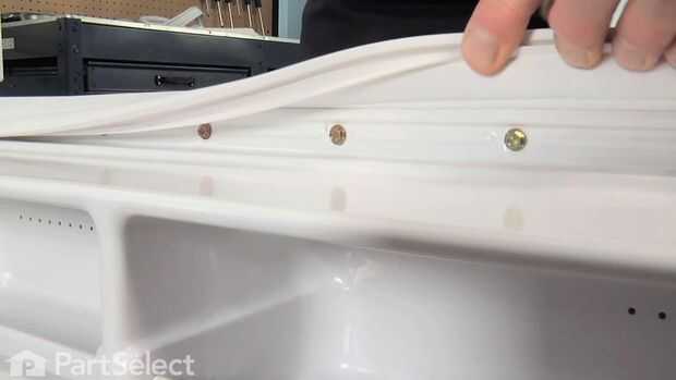 Localice el empaque de la puerta y levantar el borde. Verá muchos tornillos o pernos que sujetan la Junta a la puerta. Usando las tuercas o destornillador, quitar todos los tornillos y colocarlos con cuidado en una taza. No quiere perder ningún los sujetadores debajo del frigorífico.