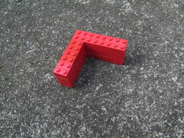 -Empieza arreglando 3 ladrillos de 2 x 4 y 1 2 x 2 ladrillo en forma de "L".