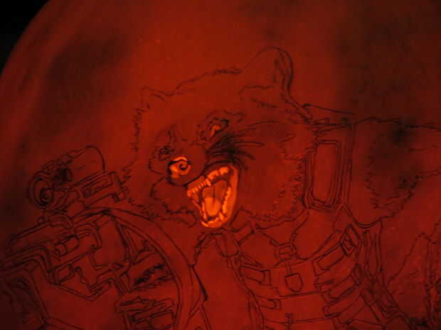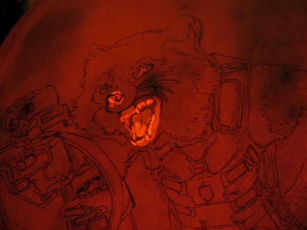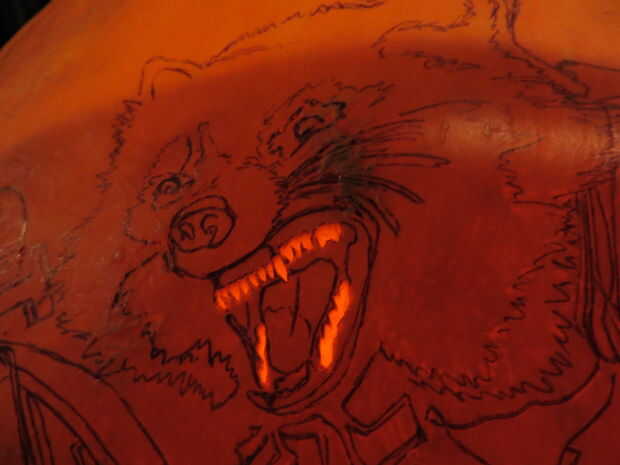 Comencé todo el tallar con cara de cohete. Usando todas las técnicas anteriormente prescritas que quiere comenzar con los dientes y la boca restante, luego hacia la piel alrededor de la cabeza.