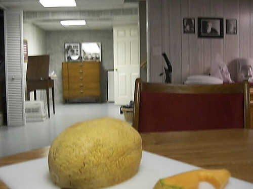 Utilizando la pieza adicional de la parte inferior nivel el lado curvo y corte la cáscara para hacer una pieza gruesa de una pulgada de melón y tallar en forma de cisne básico.  Esencialmente se trata de una forma de gancho con una cabeza más grande y el pico puntiagudo. Coloque esta a un lado hasta que el cuerpo se curva.