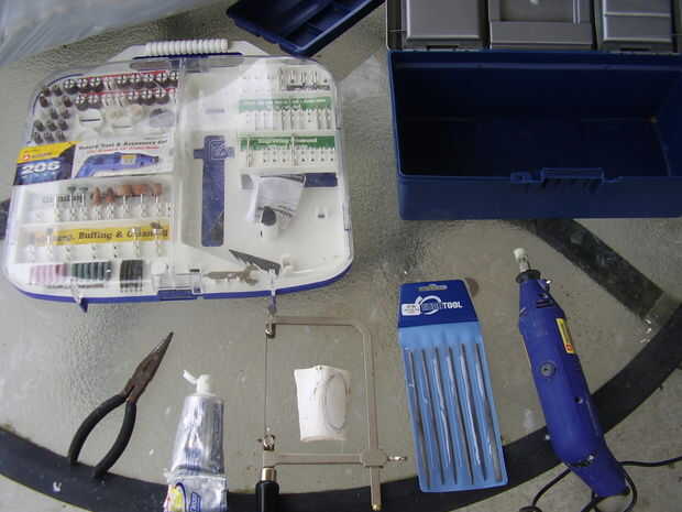 Y una dremel con una broca de diamante, una broca y lijar trozos con papel de lija.