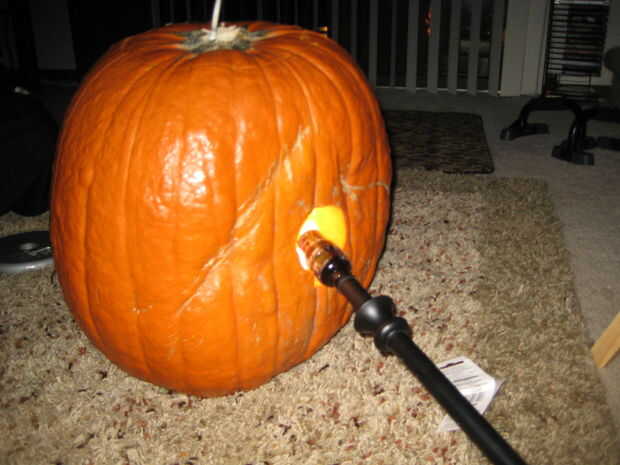 A la luz, simplemente recortas un hoel lo suficientemente grande para encajar la lámpara en la parte trasera de la calabaza y colocar la lámpara.