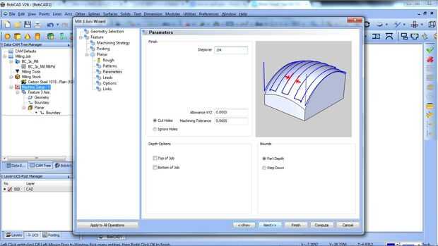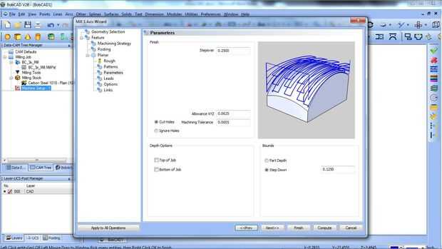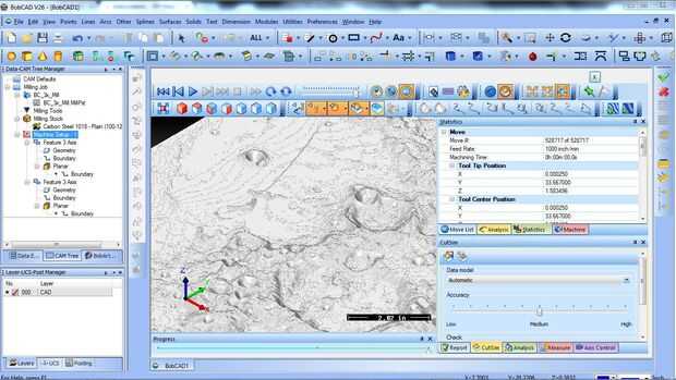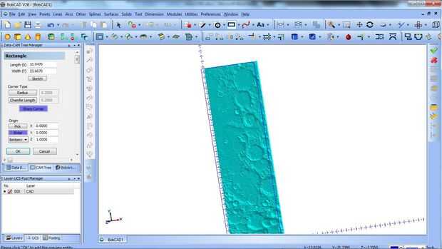 BITS: tomar por lo general dos pasadas. En bruto y acabado. Para el paso áspero elegir un nariz de bola ½" diámetro del pedacito. Para la pasada de acabado he utilizado una nariz de bola ½" o una nariz de bola de ¼". Es un retén 22. ¼" diámetro del pedacito puede lograr mayor detalle, pero necesita un menor paso de disfrazar las pisadas (aka ya mecanizado tiempo). Sorprendentemente, el diámetro del pedacito voluntad ½" dar buen detalle. Resulta que la luna topografía es suave y por lo tanto, adecuado para un poco más grande.