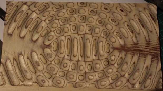 He encontrado que el mejor material a utilizar parece ser de madera contrachapada de abedul de alta calidad - no el barato cosas cutres pero lo muebles grado abedul. Esto deja a patrones de contorno muy agradables con un bonito contraste entre las capas una vez terminada. Alternativamente esto puede parecer muy agradable si se hace es una madera de grano pesado o en algún tipo de micarta capas de material.