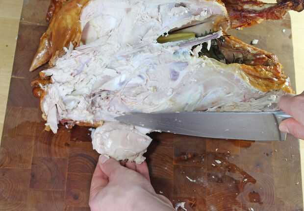 Usando su cuchillo, separarla cuidadosamente este pedazo del cuerpo del pavo.