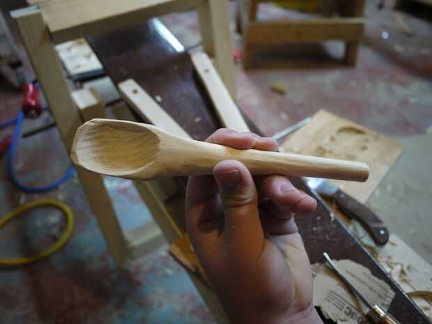 herramientasLápizTijerasSierra de cintaEscofinaVicio o abrazaderasArchivo1/2"-3/4 talla gubiaMaterialesPapel10 "x 3" x 1 "¾ o más grande pieza de maderaCinta de enmascararPapel de lija 100,120,150 granosAceite mineralSeguridad• No use